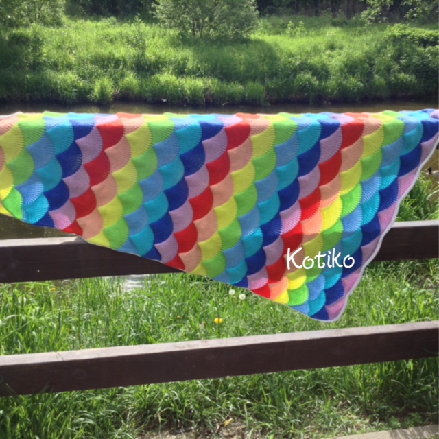 Спасибо, Юлечка, долго искала, что то не избитое, получился очень летний :) Но можно сделать и в нежных тонах. Вязать, кстати утомительно, долго я с ним провозилась :)