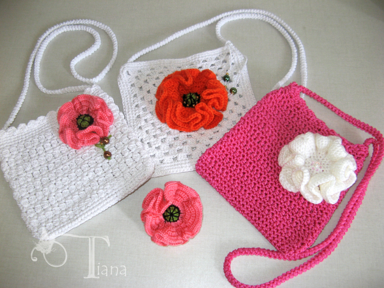 Май вдохновил на вязание маленьких сумочек с большими цветочками. вот что получилось :![]()