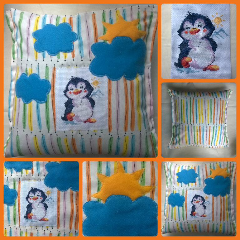 Текстиль для дома (шторы, постельное белье и т.д.)Размер 40*40 со съемной наволочкой из 100% хлопка. Пингвин и Кот