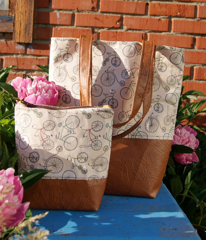 Дно и ручки- иск. кожа, велосипеды- xлопок