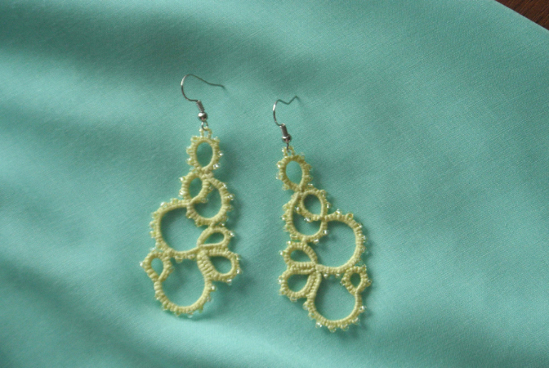 Кружевные серьги ручной работы нежно-желтого цвета выполнены в технике узелкового кружева фриволите. Прекрасно подходят к летнему гардеробу. Для работы использованы хлопковая нить и чешский бисер preciosa. Цена 600р. Отправляю в любой город.