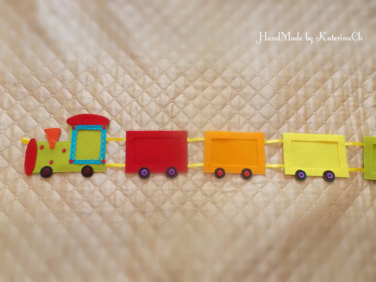 ФетрТочнее, серия рамок под фото 9*13 см. Сшилась на годовасие одного малыша. По задумке, в "голове" состава - фото родителей, и 12 вагончиков - под фото малыша в каждый месяц, от рождения до года. Идея показалась мне интересной. Вот что получилось: