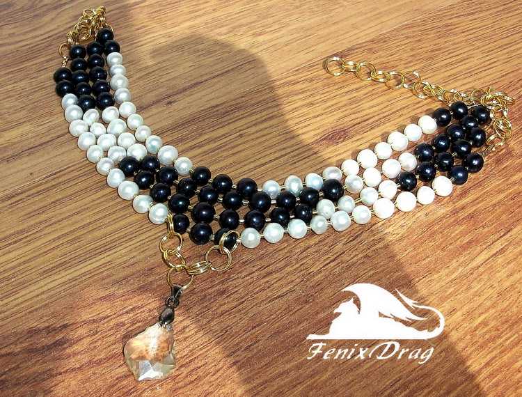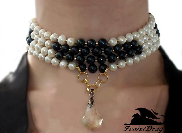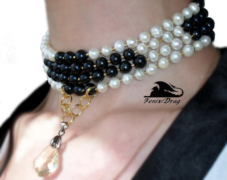 Колье - ошейник женский "Изабель" из натурального черного и белого жемчуга