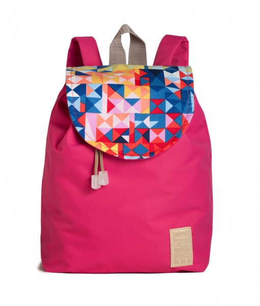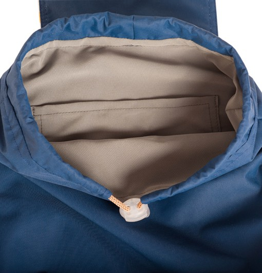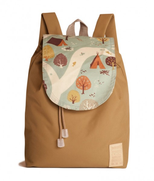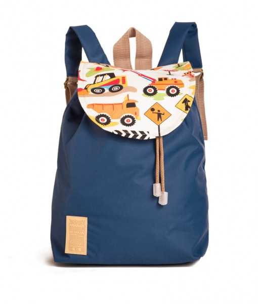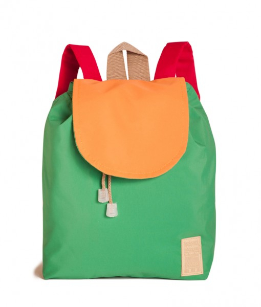 Детский рюкзак из непромокаемой ткани с клапаном из хлопка. Длина лямок регулируется полукольцами.