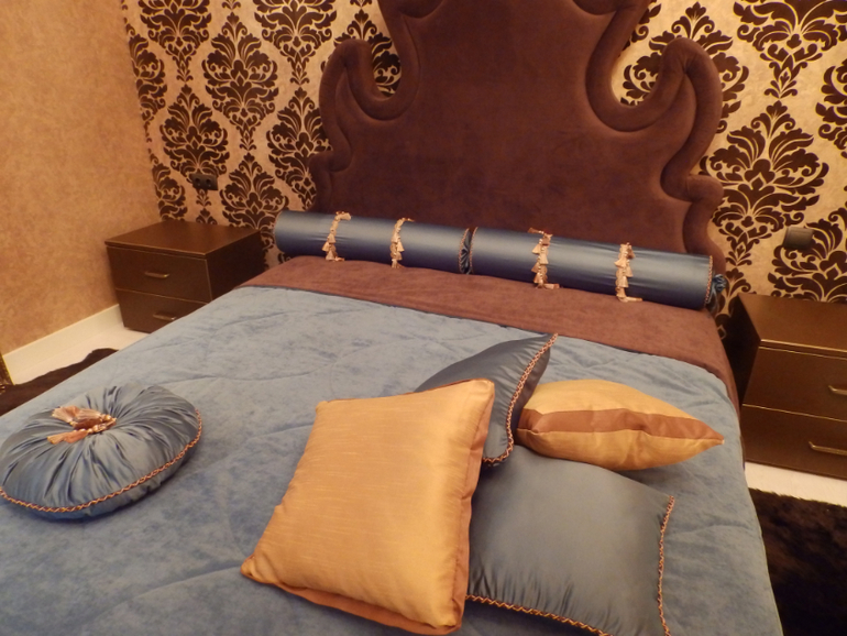 некоторые выполнены с помощью швейной машины, а одна штука- полностью ручная работа! покрывало тоже выполняли для заказчика, но в данном контексте оно представляем меньший интерес, чем подушки)))