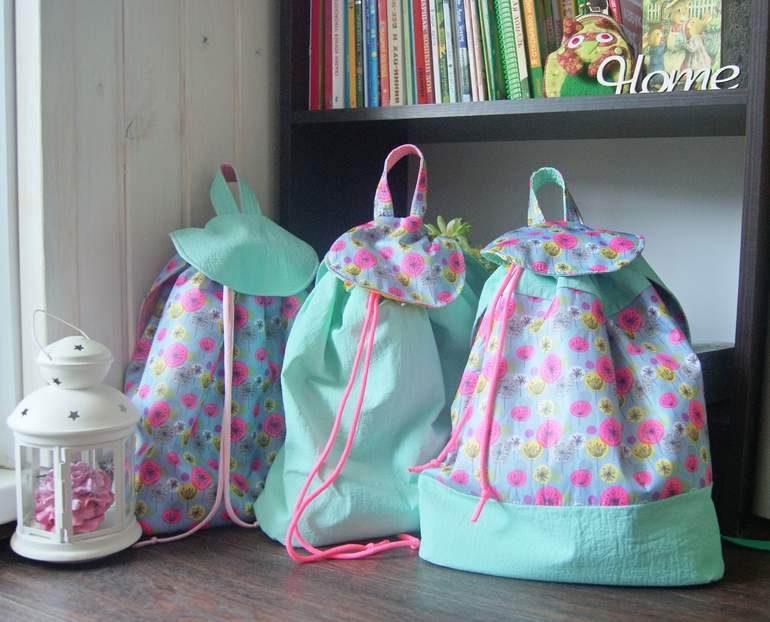 Все размером прим. 30*32, с яркими xлопоковыми подкладками, маленьким кармашком внутри.