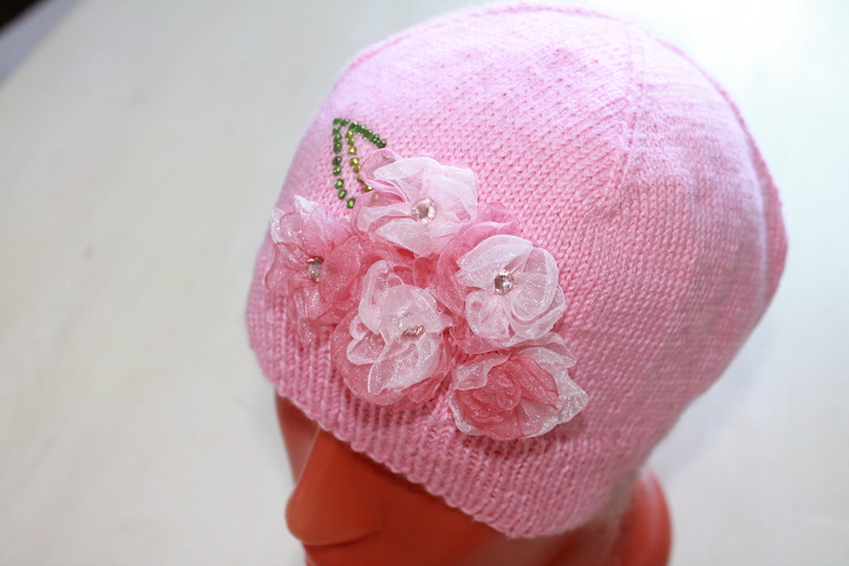 Вяжу на продажу и обменпрекрасная шапочка розового цвета, идеально для осенне-весеннего периода. размер 48. украшена стразами сваровски и цветами ручной работы.