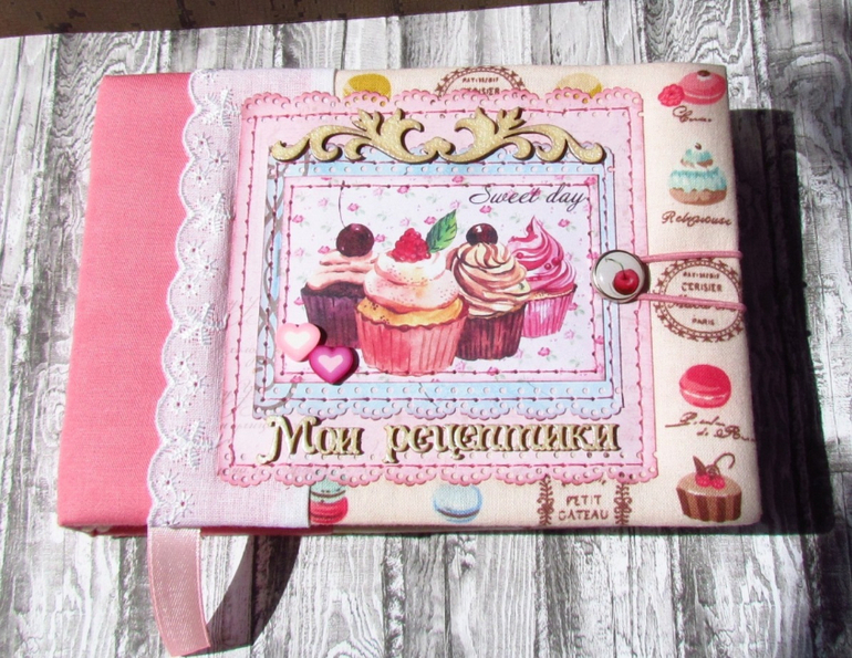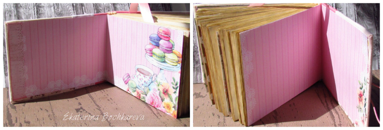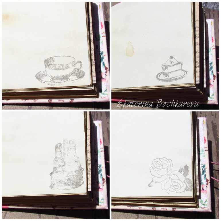 Скрапбукинг (альбомы, открытки и пр.)Размер 15,5х11см. 120 листов, тонированных в кофе, проштампованных декоративными штампами, коптский переплет.