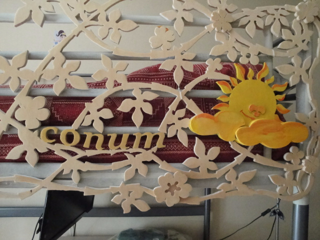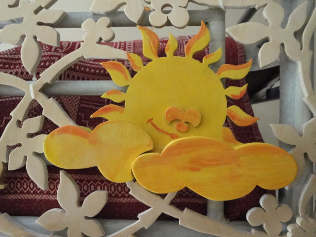 Нам хотелось скрасить это сооружение и пришла вот такая идея. В сплетении листьев и цветов надпись "Здесь сопит"....и солнышко. Подумали а вдруг кто другой сопеть будет и решили без имени. При солнце цветы и листья блестят и играют зайчиками, а надпись сверкает позолотой.![]()