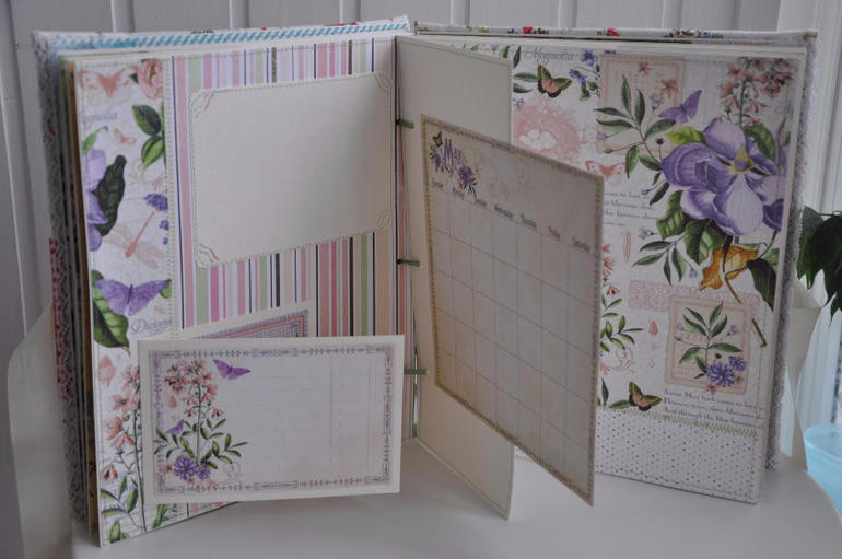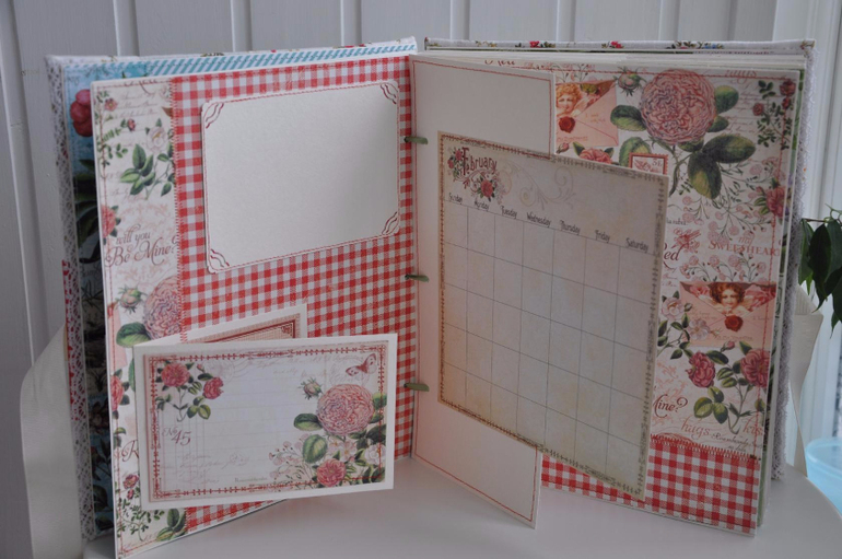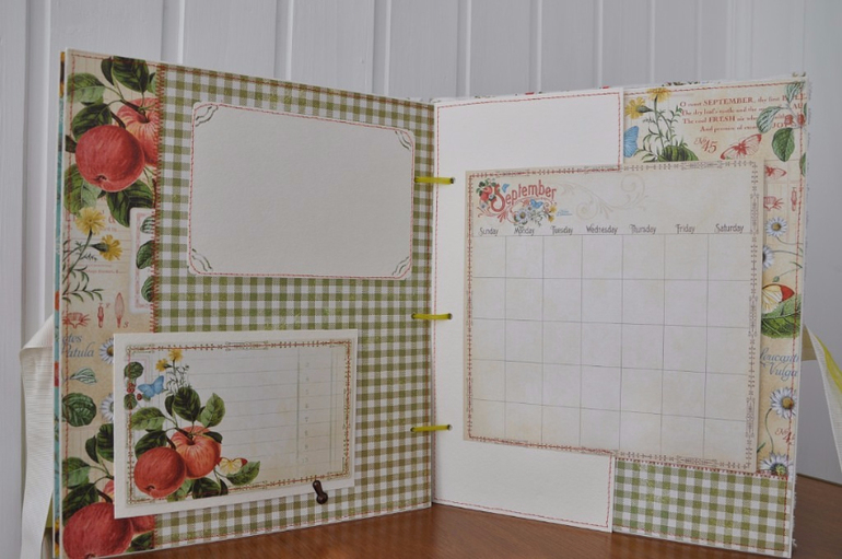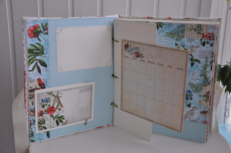 Скрапбукинг (альбомы, открытки и пр.)Такие альбомы я делаю довольно регулярно, как только кампания graphic45 выпускает новую коллекцию с календарной сеткой. На фасаде в рамке можно написать имя или год