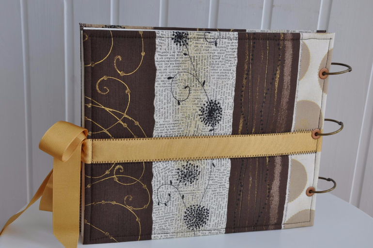 Альбом под самозаполнение. Вам останется только купить уголки для фото или вырезать подложки и пробить в них уголки. а также немного декорировать. Думаю, что есть немало творческих людей, которые хотят поскрапить, но не хотят влазить в это хобби по-серьезному. Такие базовые альбомы я делаю все время, Они не дорогие и пользуются хорошим спросом. Тематика может быть любая.На бумаге не экономлю. Здесь есть и золотое тиснение и глиттер. Ткань амер. хлопок с золотыми завитками.