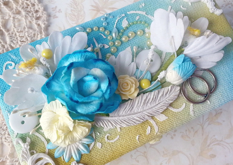 Свадебный фотоальбом (размер 27х27 см, на обложке цветы ручной работы) - 4200 руб - 3000 руб