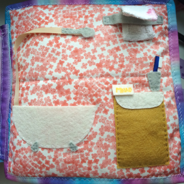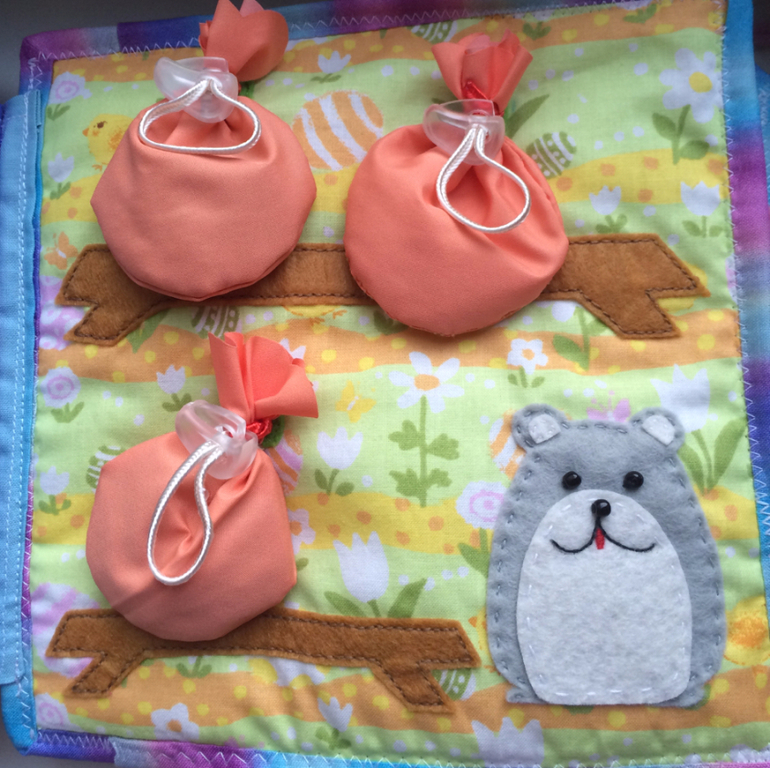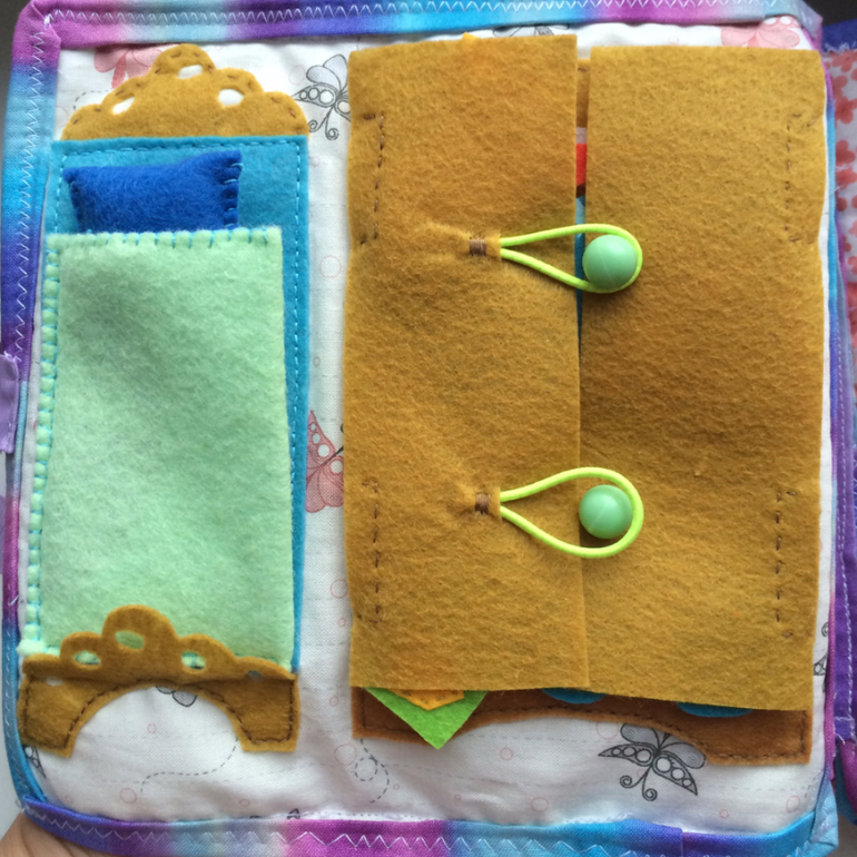 все мелкие детальки можно сложить в конверт и убрать его, если хотите дать ребенку больше самостоятельности в игре с книгой, или положить все отстегивающиеся детали в конверт, чтобы постирать книжку