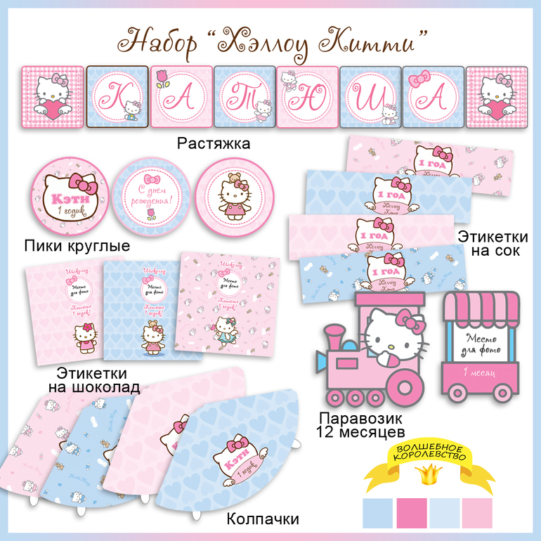Оформление праздников, аксессуары для фотосессийВ "Волшебном королевстве" долгожданная премьера набора "Хеллоу китти"! Нежный наборчик украсит праздник вашей малышки и сделает его незабываемым! Дополнить можно множеством других элементов из нашего прайса здесь