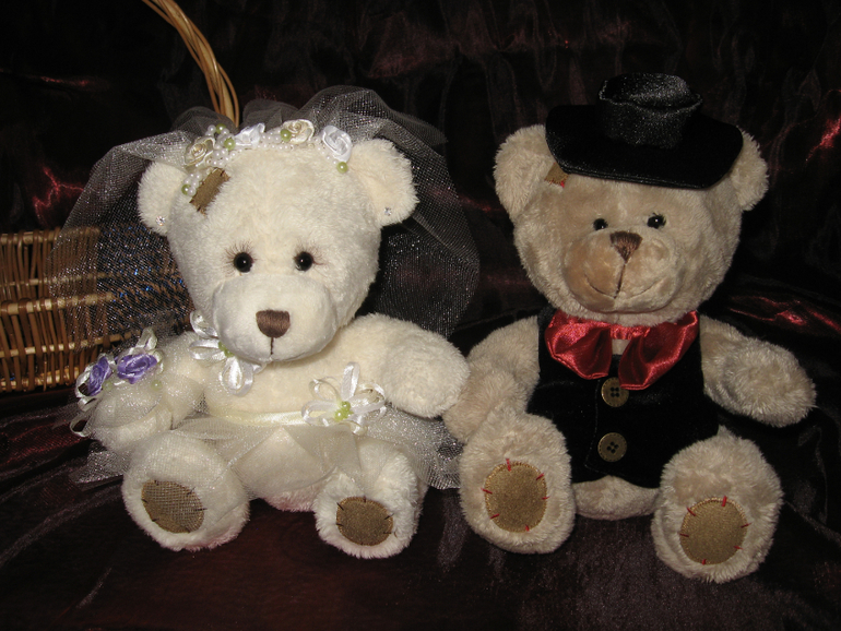 Куклы и игрушкиНекоторое время назад к свадьбе брата захотелось подарить что-нибудь памятное, так как сама являюсь большим любителем игрушек, пришлась по душе идея свадебных мишек. Шить игрушки сама к сожалению пока не умею, поэтому воспользовалась фабричными, а вот наряды и аксессуары, с большим удовольствием изготовила сама. Искала вдохновение на просторах интернета, давно думала поделиться своими результатами, может кому-то для полета фантазии не хватает совсем чуть-чуть)))