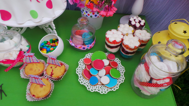 Гости и именинница хоть и юны совсем, но в сладостях толк знают))от стола не отлучались ни на минуту, хоть и не съели, но поднадкусывали) ни один гость в аллергии замечен не был)