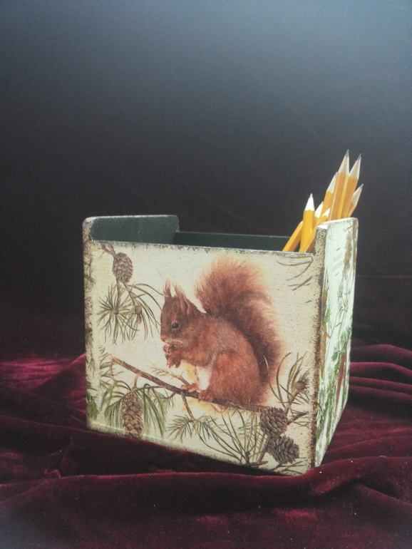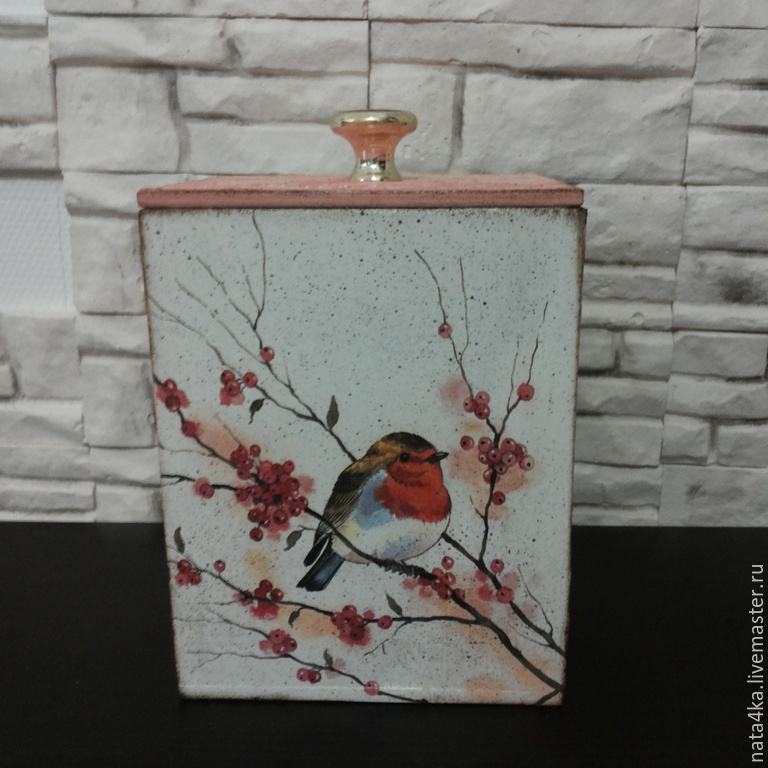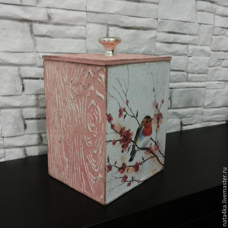 Короб для сыпучих декорирован в технике декупаж. Все материалы использованные в работе на водной основе. Внутренняя часть не обработана. Размер 14х12 высота 18см