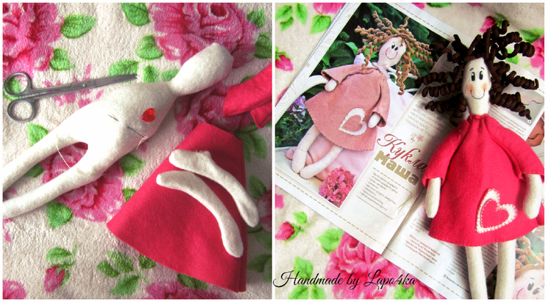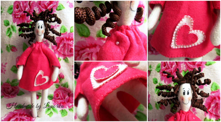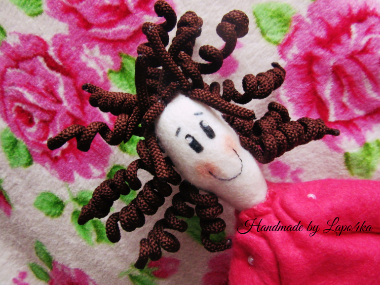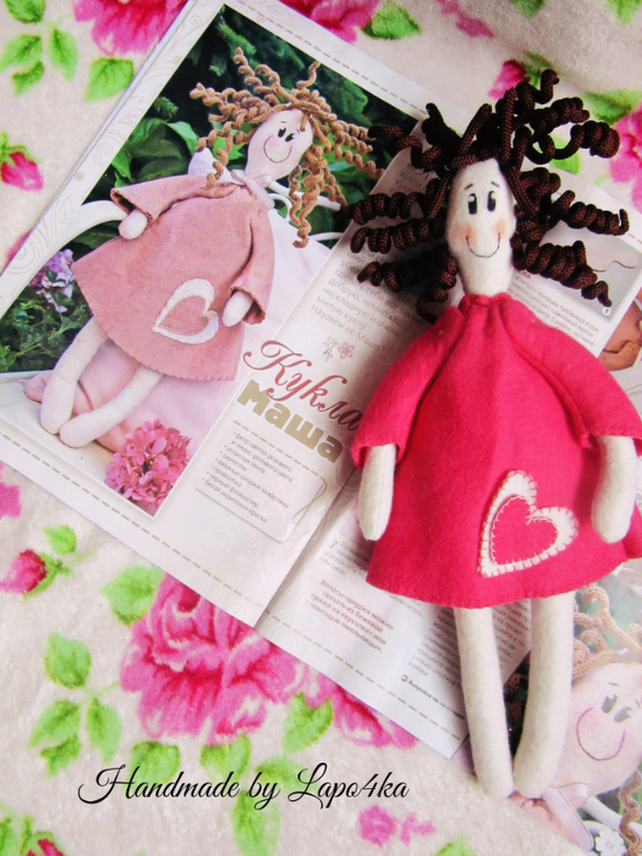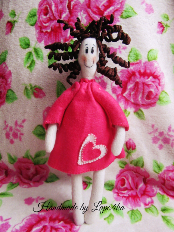 Прелестная фетровая Маняша,в нарядах прелестного розового цвета!Несет тепло и уют,может использоваться как интерьерная и как игровая.Волосики на проволочке,но всё безопасно)