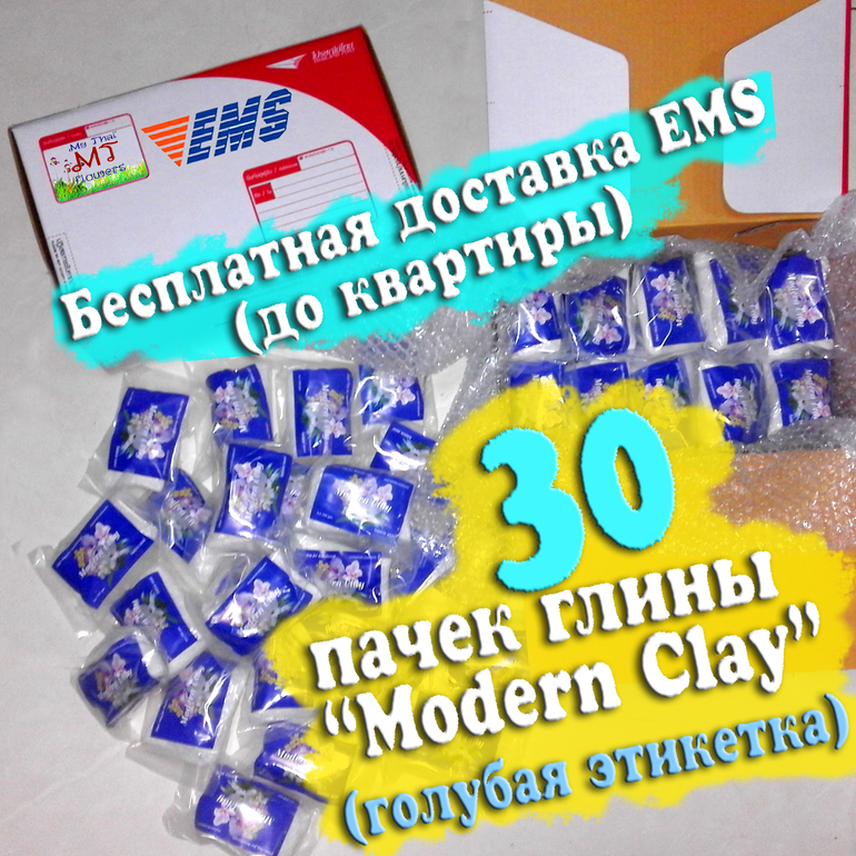 Пластика и холодный фарфорДрузья! Мы продолжаем акцию "Готовь глину летом", и уточняем такой момент - Вы можете заказать набор из 30 глин экспресс-доставкой в сборном виде. Например, 10 Modern Clay с синей, 10 с зеленой , 10 глины май тай в одной коробке. Сегодня этот набор стоит всего 7940 руб! Доставка 7-10 дней до дверей квартиры БЕСПЛАТНА!