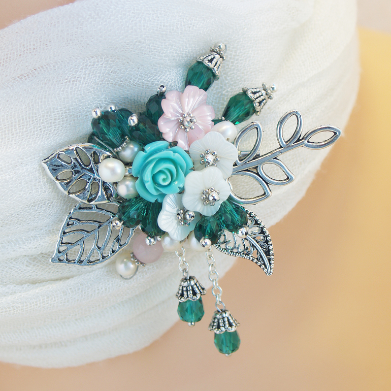 Бижутерия, броши, аксессуары для волосБрошь ручной работы, собранная в технике авторского плетения. Единственный экземпляр.
