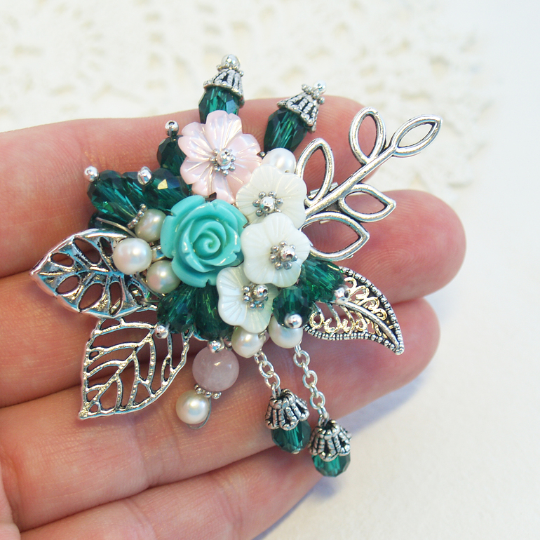 Брошь ручной работы, собранная в технике авторского плетения. Единственный экземпляр.