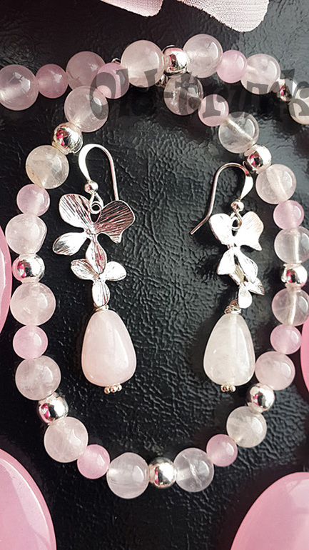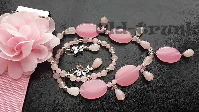 Комплект из розового кварца и серебра. Нежнючка.