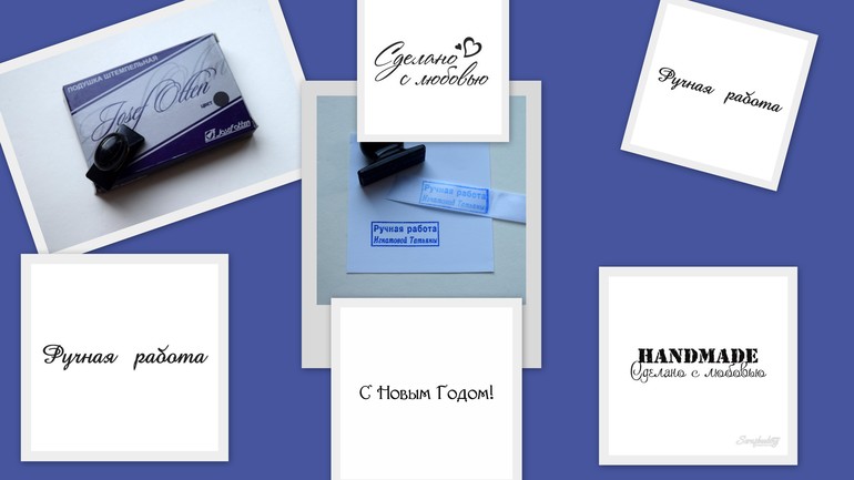 Напишите в личку, какую вам нужно надпись. Размер штампа 18х40мм (это чтобы вы прикинули сами, сколько слов можно поместить) Заказ готовится от двух до пяти дней в зависимости от загруженности.