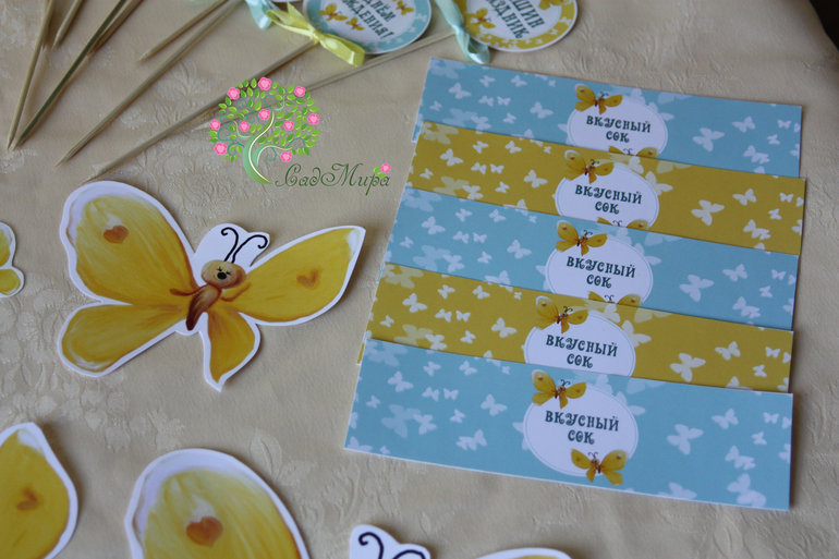 Набор атрибутики для декора дня рождения "Бабочки" (Желто-бирюзовый).