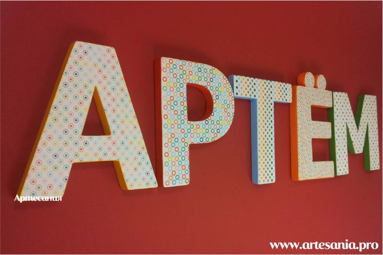 Предметы интерьера, декор, мебель и изделия из дереваВсем привет! Делаю имена для Ваших малышей - красивые, оригинальные, весёлые! Все слова делаю из дерева и декорирую разными техниками (точечная роспись, декупаж, покраска с разными эффектами, дополнительный объёмный декор и пр.) Подхожу индивидуально и творчески к каждому заказу! С удовольствием сделаю имена для Ваших деток так, чтобы они украшали интерьер комнат и радовали Вас каждый день! Заходите и добавляйтесь в группы в соцсетях, буду рада! http://vk.com/artesania_pro, http://ok.ru/group/52439018242204, https://www.facebook.com/groups/artesania.pro/