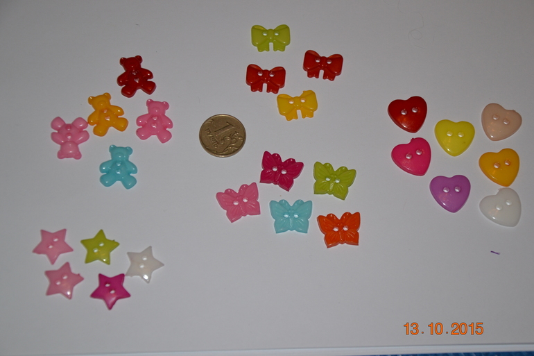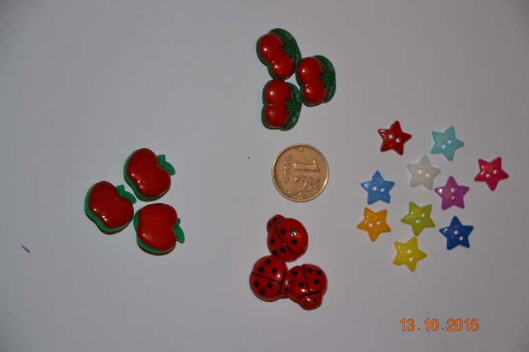 пластиковые пуговки яблоко, вишня, божья коровка и звездочки - 5 руб