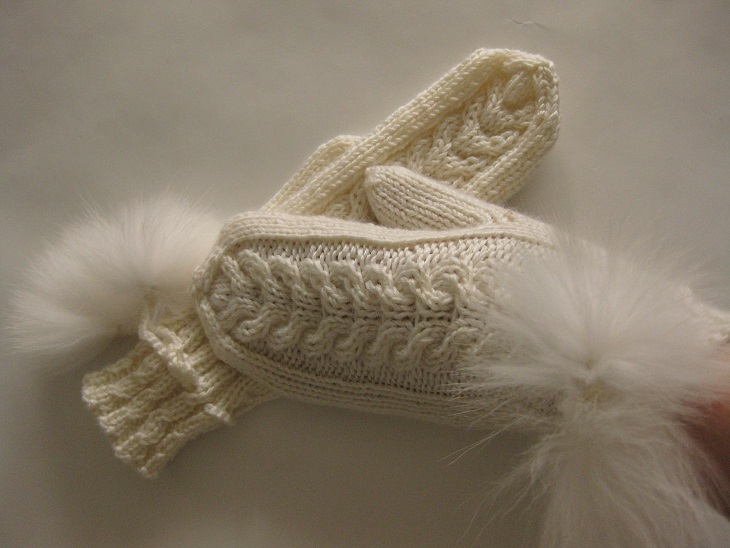 Вяжу на продажу и обменВарежки с помпонами из натурального меха.