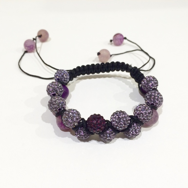 3. Браслет двойной из агата "кракле" и бусин со стразами двух цветов - 600р.