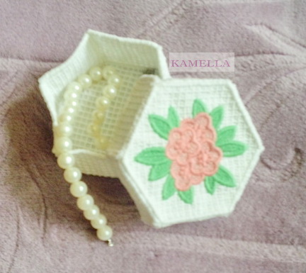 щкатулка машинная вышивка высота 5 см , по диагонали 11 см