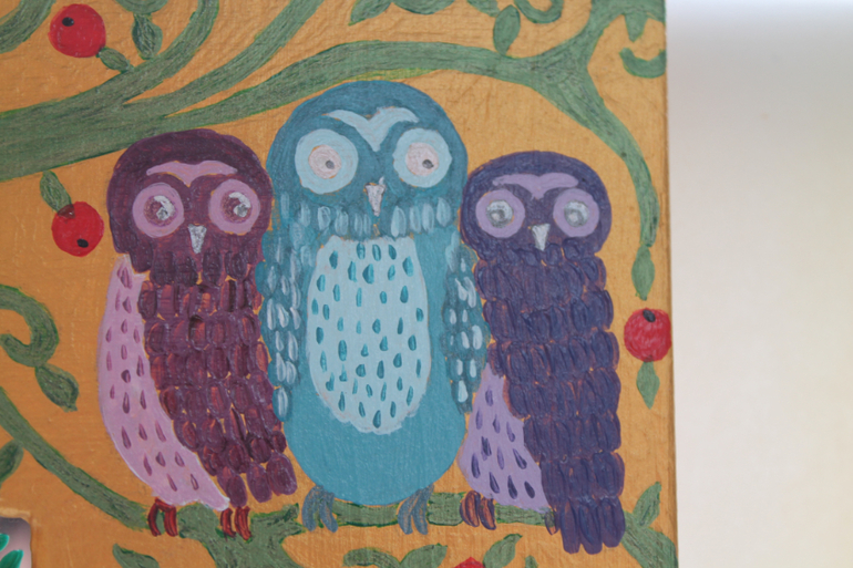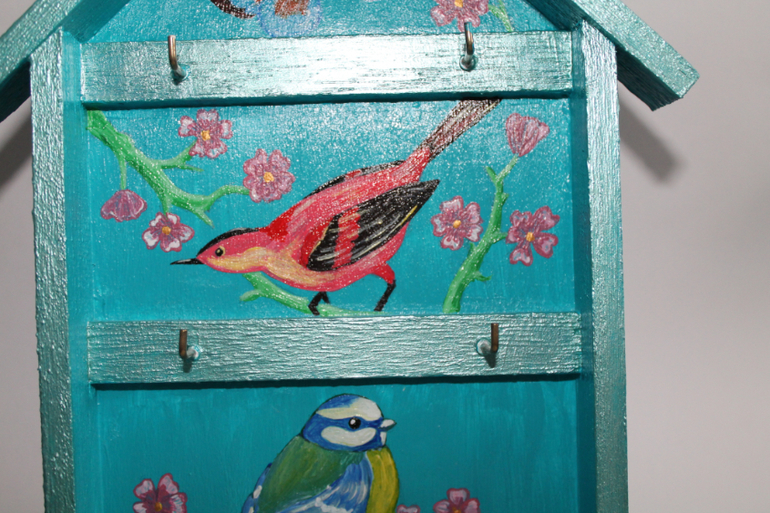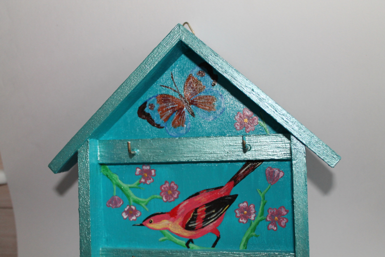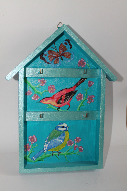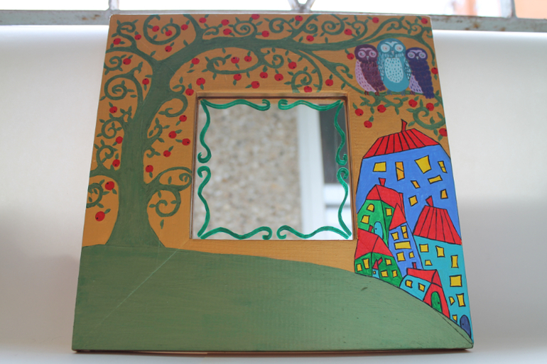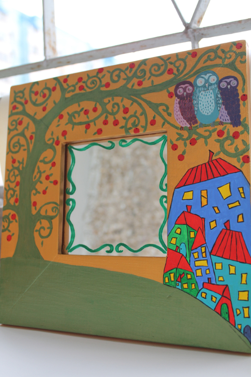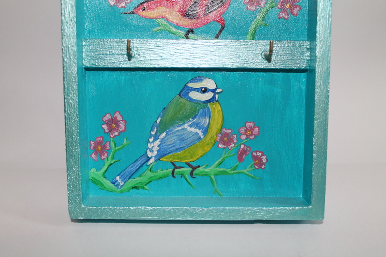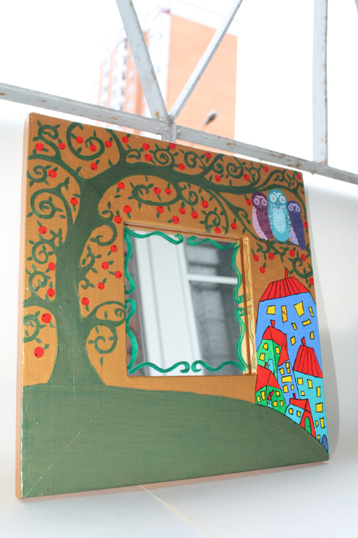 Меня зовут Настя и я хотела бы показать две деревянных вещи) Одна - это ключница на 4 комплекта ключей, с петелькой на обороте для крепления на стену. Вторая - зеркало в раме (25*25 см). Эти разные, и по назначению и по стилю, вещи объединяет одно - ручная роспись. Они ошкурены, прогрунтованы и расписаны акрилом. И обе могут быть проданы, если появятся желающие обзавестись такими вещами)