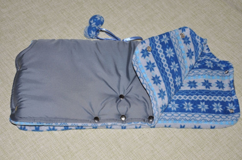 Если Вы часто забываете дома варежки/перчатки или у Вас просто мерзлявые руки Вам будет полезна эта вещица. Универсальная муфта на коляску/санки. Крепится при помощи кнопок.