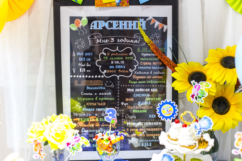 В состав набора вошли: растяжка "Арсюше 3 года", постер достижений в виде меловой доски, этикетки на сок и шоколадки, колпачки и топперы. Состав набора может дополняться и изменяться.