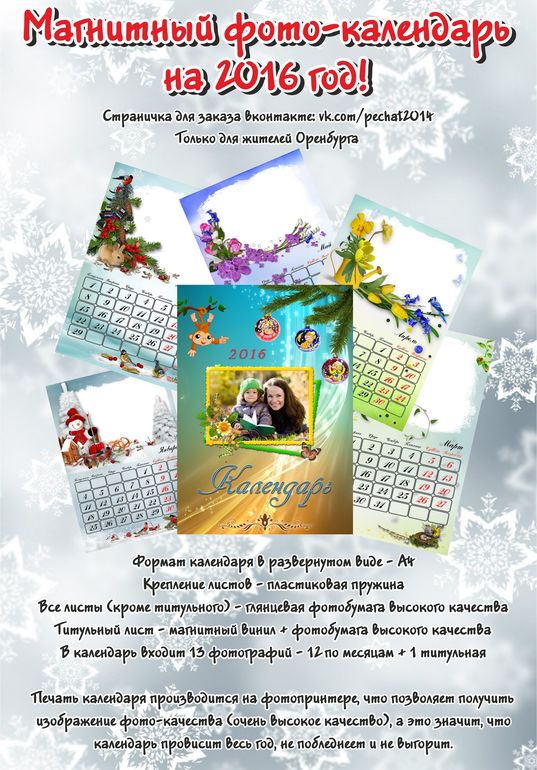 В календарь входит 13 фотографий - 12 по месяцам + 1 титульная