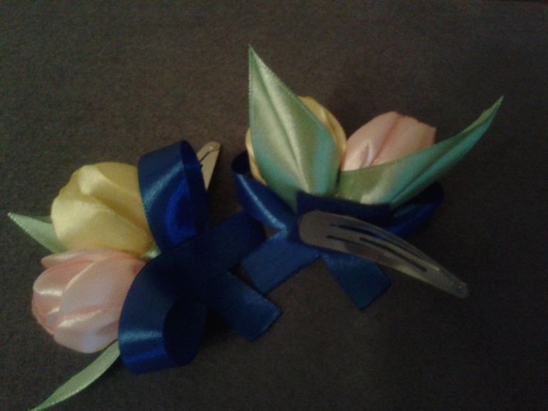 Заколочки клик-клак " тюльпаны". Около 7 см. Цвет: желтый, розовый. Цена 300 руб. за пару.