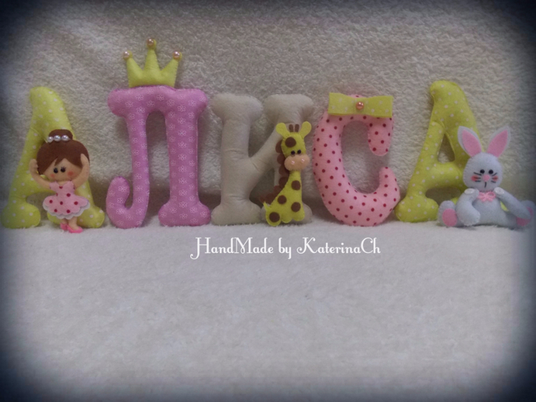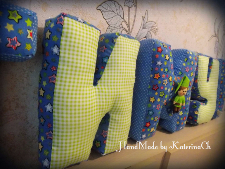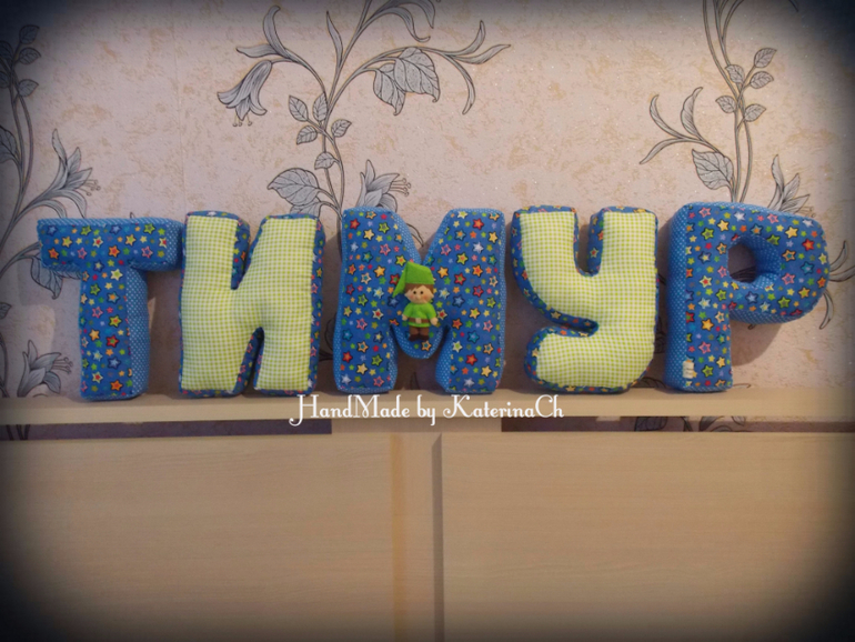 Ну и маленькому Тимурчику буквы-подушки с фетровым гномиком, на кнопочке
