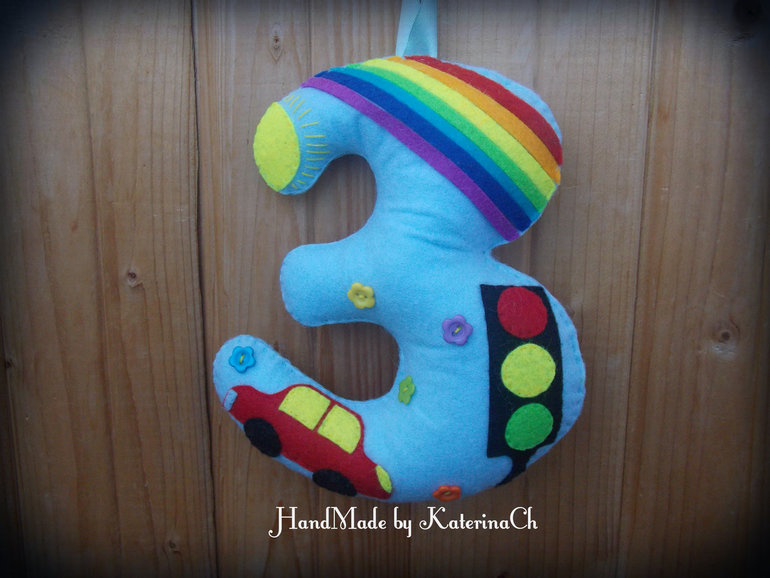 На ДР малыша сшита цифра 3 из фетра, высотой 20 см