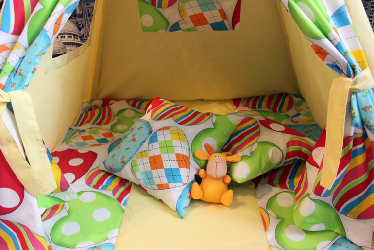 Ткань вигвама легко снимается и стирается в стиральной машинке.