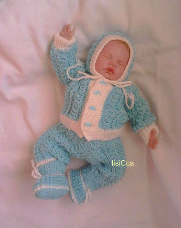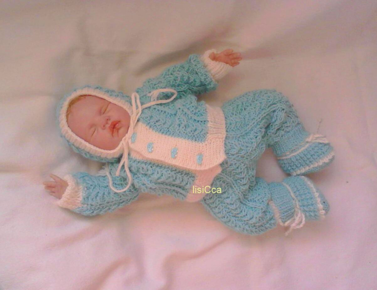Комплект состоит из кофточки с капюшоном , штанишек,чепчика и пинеточек .
