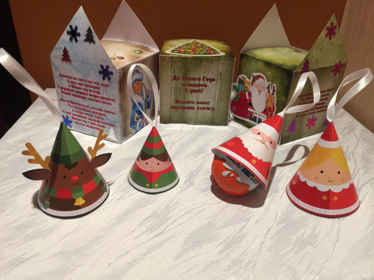 Фигурки 3D санта, олень, эльф (украшения на елку),