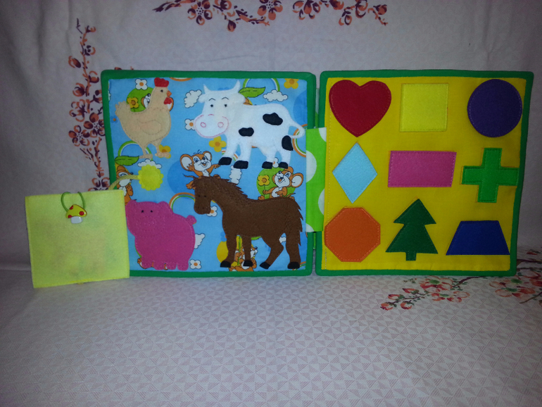 Размер 23* 23 см, 5 листов ( 10 страниц - 2 обложки и 8 игровых страниц ), содержит 35 съемных деталей..