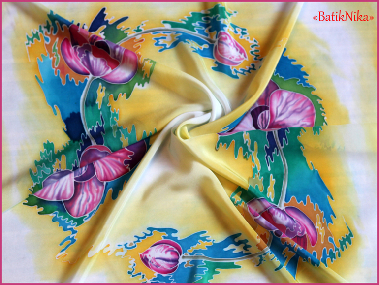 Батик, ручная роспись по тканиВымтавляю только готовые работы. Платочки, которые еще не нашлт свою счачтливую хозяйку)) Роспись выполнена на натуральном шелке, краска закреплена, можно стирать.