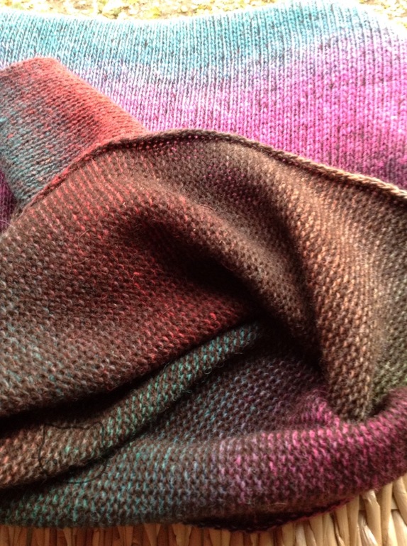 Чистошерстяная пряжа немного с "характером", может вызывать чувство покалывания, у чувствительных людей, поэтому в этой работе применен прием, где с изнанки проходит мягкая ниточка, которая убирает неприятные ощушения. плюс создает новое цветовое решение.