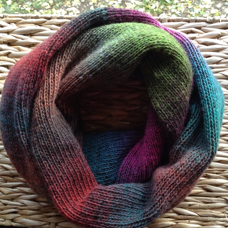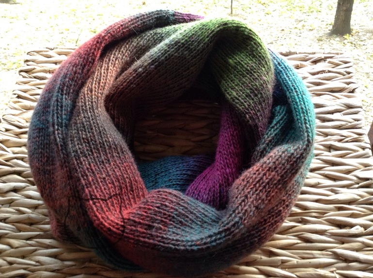 Легкий, но очень теплый шарф-снуд связан из экопряжи. 100% шерсть, окрашенная натуральными красителями.