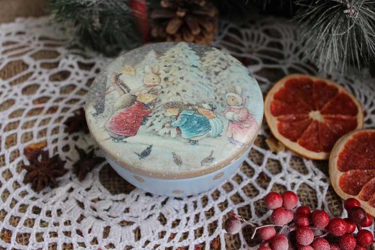 ДекупажЗа окном у нас конечно погода совсем не зимняя,больше осенняя с приличным плюсом,но все таки праздники не за горами и я чуть потрудилась