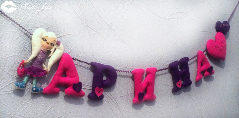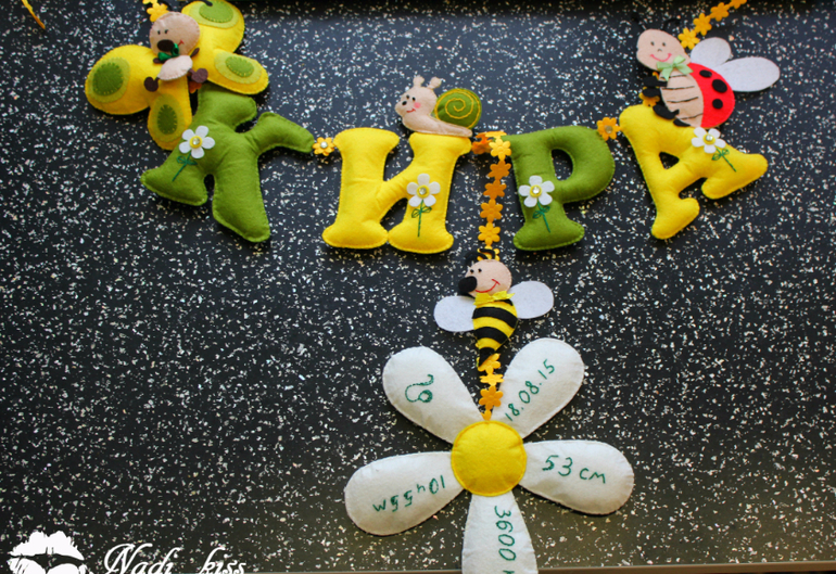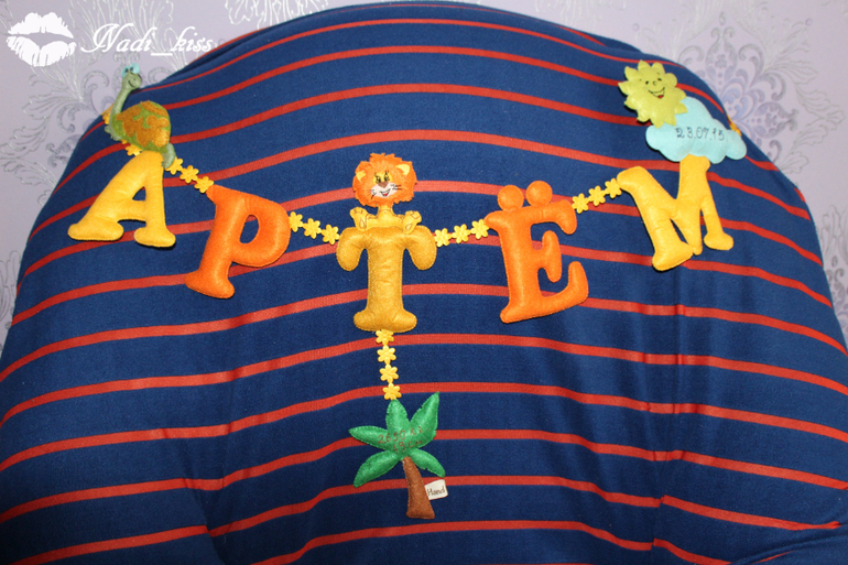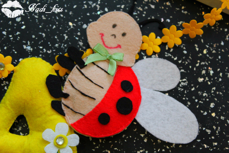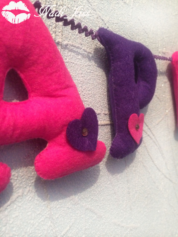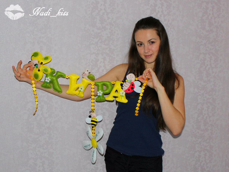 Первое панно!!! Для Кирочки)) Размер букв 10 см,бабочка вышла 11 см,ромашка 15 см!