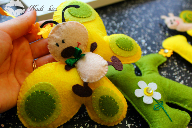 ФетрХочу показать вам своё творение! Нравится мне заниматься этим! Очень много времени уходит у меня на это творчество,но я люблю кропотливую работу! Мои панно состоят из фетра(верного моего друга!),нити мулине,леска,стразы,пуговки из дерева,ленточек,холлофайбера! И конечно же,я делаю всё с душой! Ведь для детей!!!